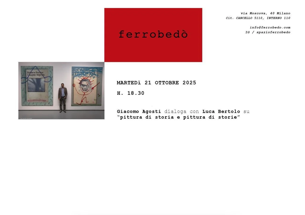 Giacomo Agosti dialoga con Luca Bertolo su “pittura di storia e pittura di storie” martedì 21 ottobre 2025 18:30 20:00 Via Moscova 40 Milano, Lombardia, 20121 Italia (mappa) Google Calendar ICS
